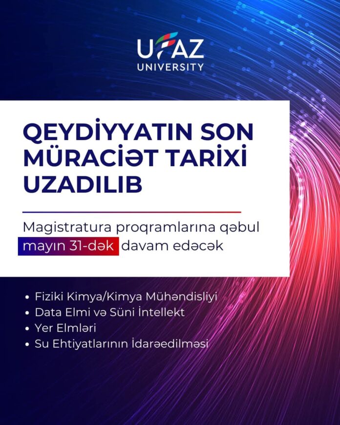 📌UFAZ-ın magistratura proqramlarına qeydiyyat müddəti mayın 31-dək uzadılıb.