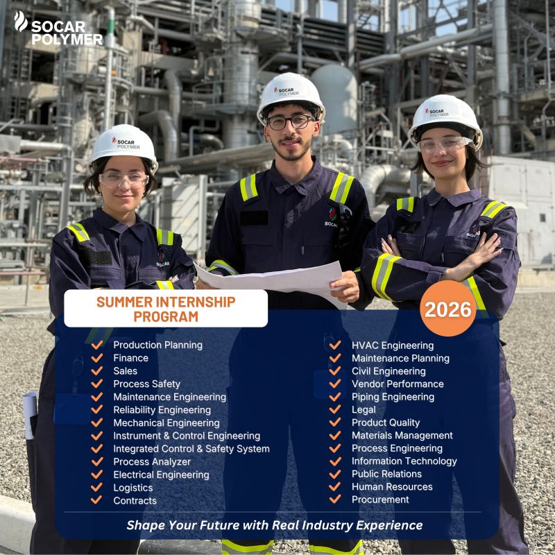 Hər hansı sual olacağı təqdirdə internship@socarpolymer.az ünvanına e-mail vasitəsilə müraciət etməyiniz xahiş olunur.
