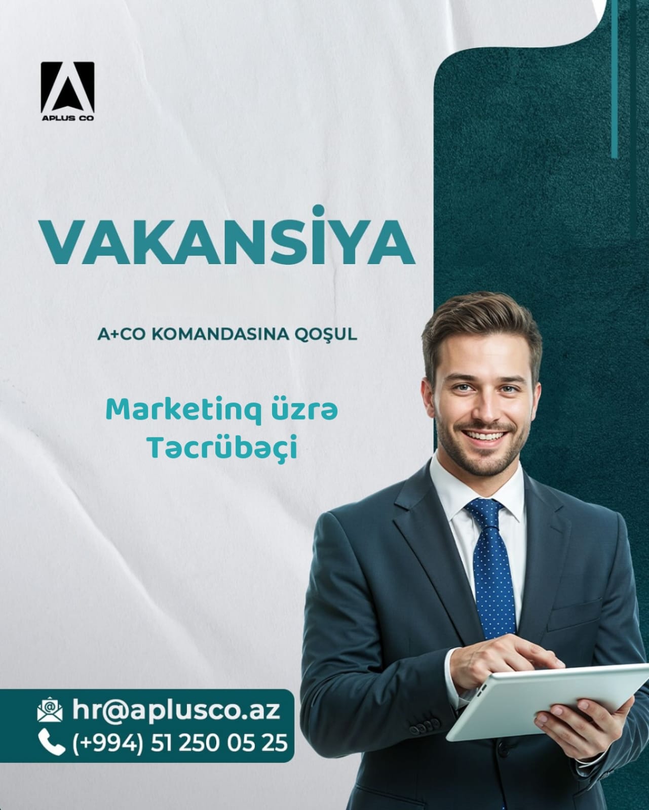 CV-nizi mövzu hissəsində “Marketinq üzrə Təcrübəçi” qeyd etməklə hr@aplusco.az e-poçt ünvanına göndərə bilərsiniz.