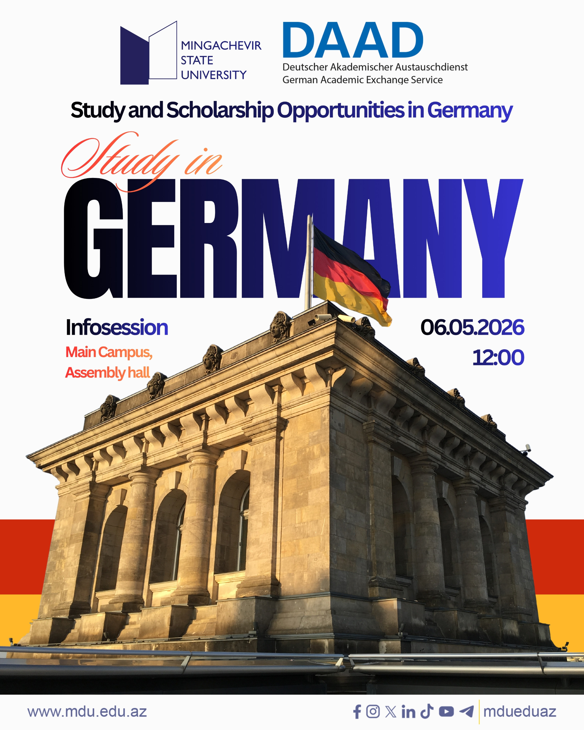 Mingəçevir Dövlət Universitetində Alman Akademik Mübadilə Xidməti – DAAD tərəfindən “Study and Scholarship Opportunities in Germany” mövzusunda infosessiya keçiriləcək.