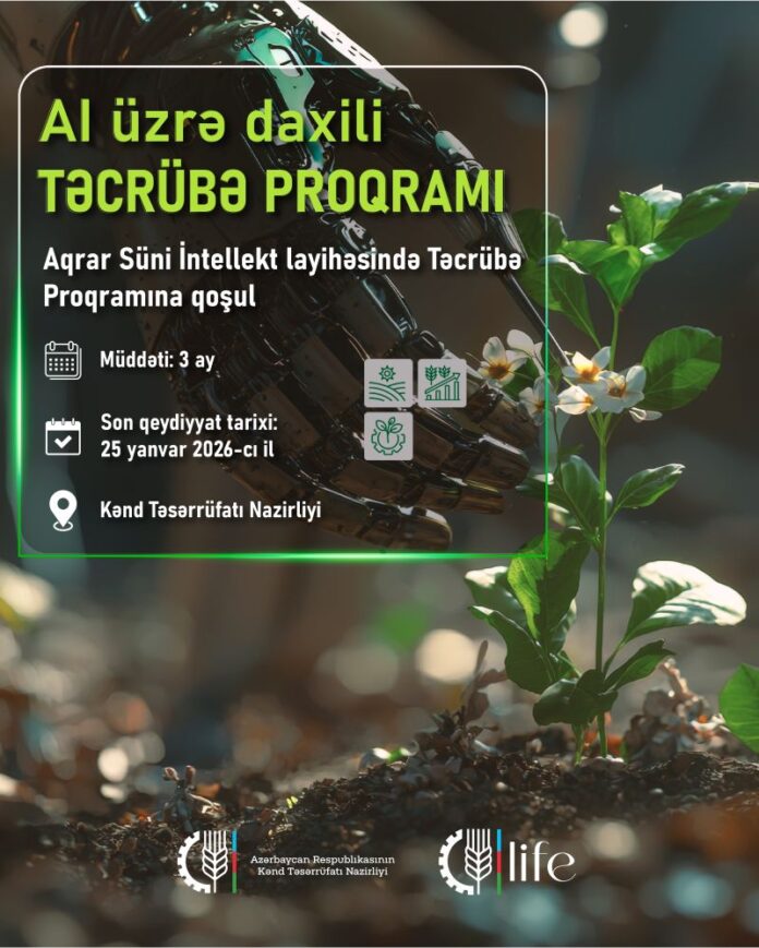 Kənd təsərrüfatında rəqəmsal transformasiyanı sürətləndirməyi hədəfləyən “Aqrar Süni İntellekt” layihəsi çərçivəsində 3 aylıq daxili Təcrübə Proqramına start verilir.