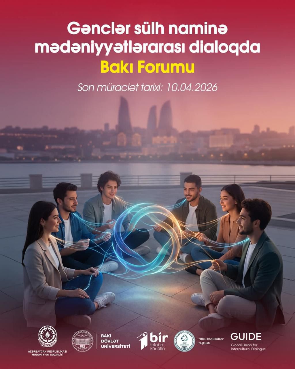 Azərbaycan Respublikası Mədəniyyət Nazirliyinin dəstəyi, “Bir Könüllü” Tələbələrin Əməkdaşlığı İctimai Birliyi, Bakı Dövlət Universiteti və Mədəniyyətlərarası Dialoq naminə Qlobal İttifaqın tərəfdaşlığı ilə “Gənclər sülh naminə mədəniyyətlərarası dialoqda – Bakı Forumu” həyata keçiriləcək.
