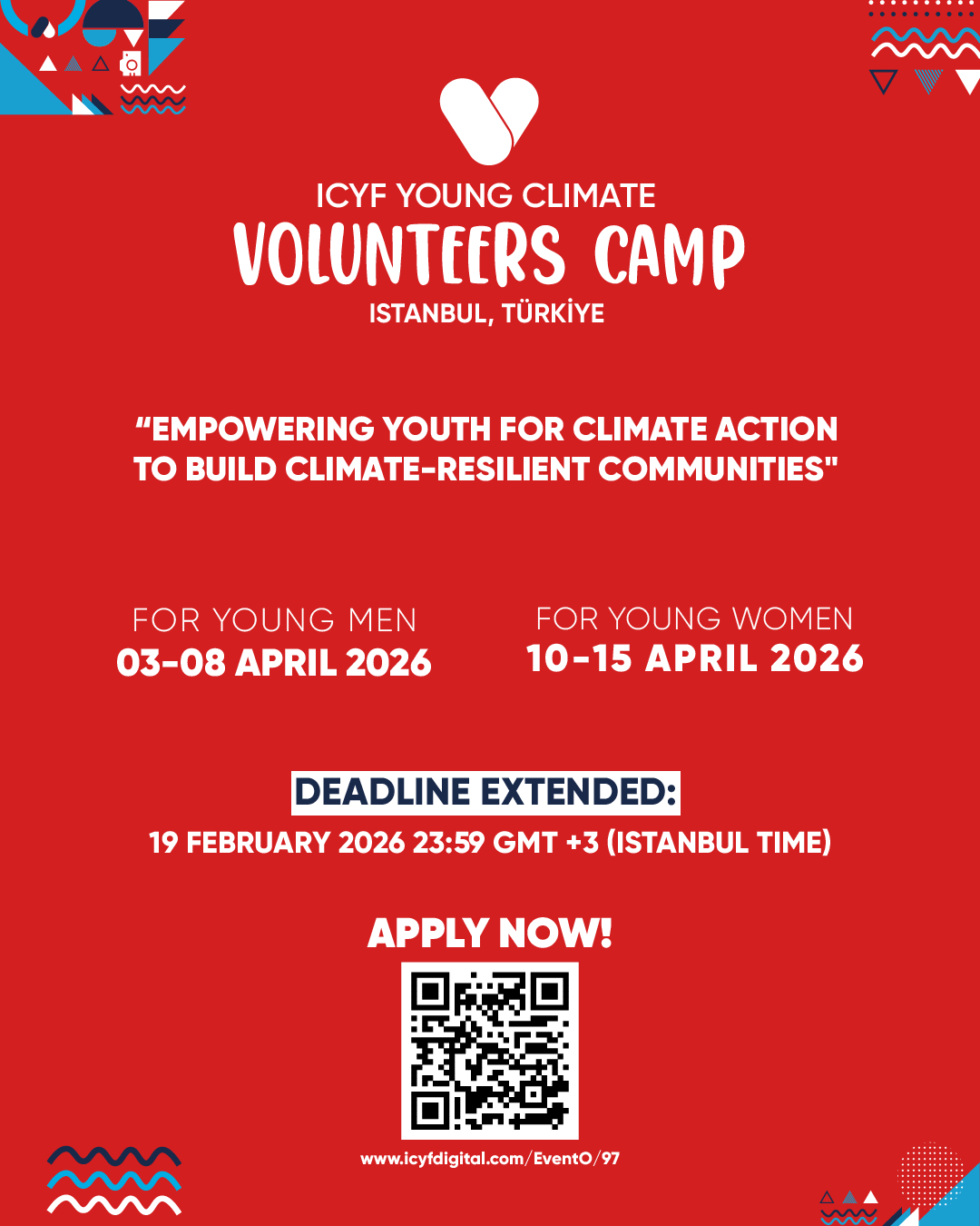 2026 ICYF Gənc İqlim Könüllüləri Düşərgəsi mehribanlıq və sosial məsuliyyət dəyərlərini önə çəkir və OİK regionundan gəncləri bir araya gətirir. Düşərgə iştirakçılara praktik könüllülük bacarıqlarını inkişaf etdirmək, gənclərin rəhbərlik etdiyi iqlim təşəbbüslərini gücləndirmək, təcrübə mübadiləsi etmək, mədəniyyətlərarası əlaqələr qurmaq və yerli icmalarda iqlim həllərinə töhfə vermək imkanı yaradır.