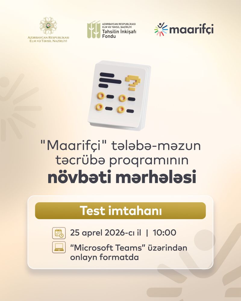 İmtahan 25 aprel saat 10:00-da “Microsoft Teams” platforması üzərindən onlayn formatda həyata keçiriləcək.