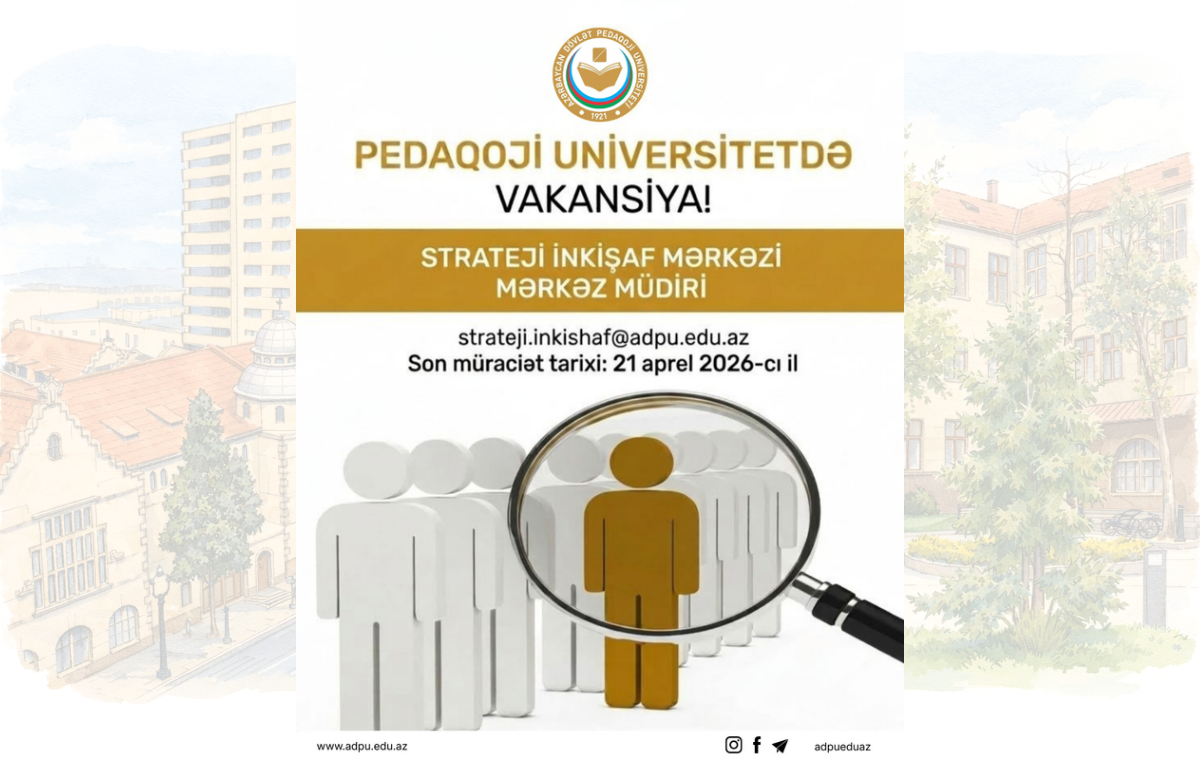 Müraciət üçün CV-ni strateji.inkishaf@adpu.edu.az elektron poçt ünvanına göndərərkən imeylin mövzu hissəsində “ADPU SİM müdir” qeyd olunmalıdır.