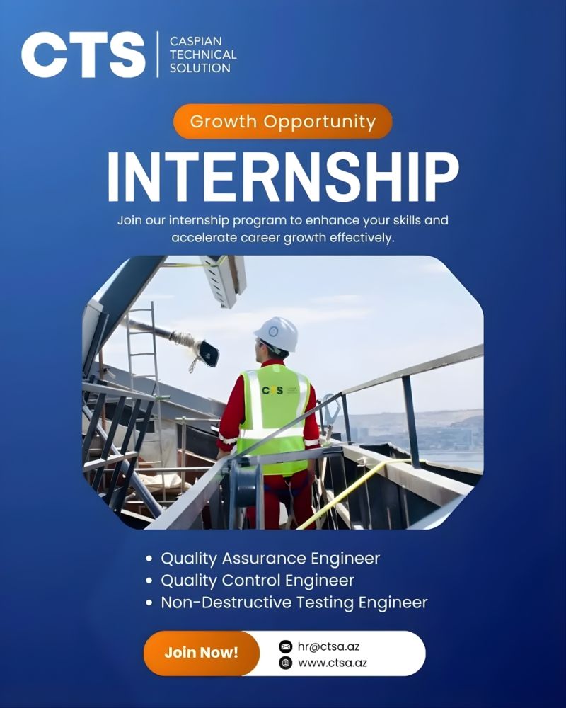 Müraciət qaydası: CV-nizi ingilis dilində, mövzu hissəsində “Internship” qeyd etməklə “hr@ctsa.az” ünvanına göndərin.